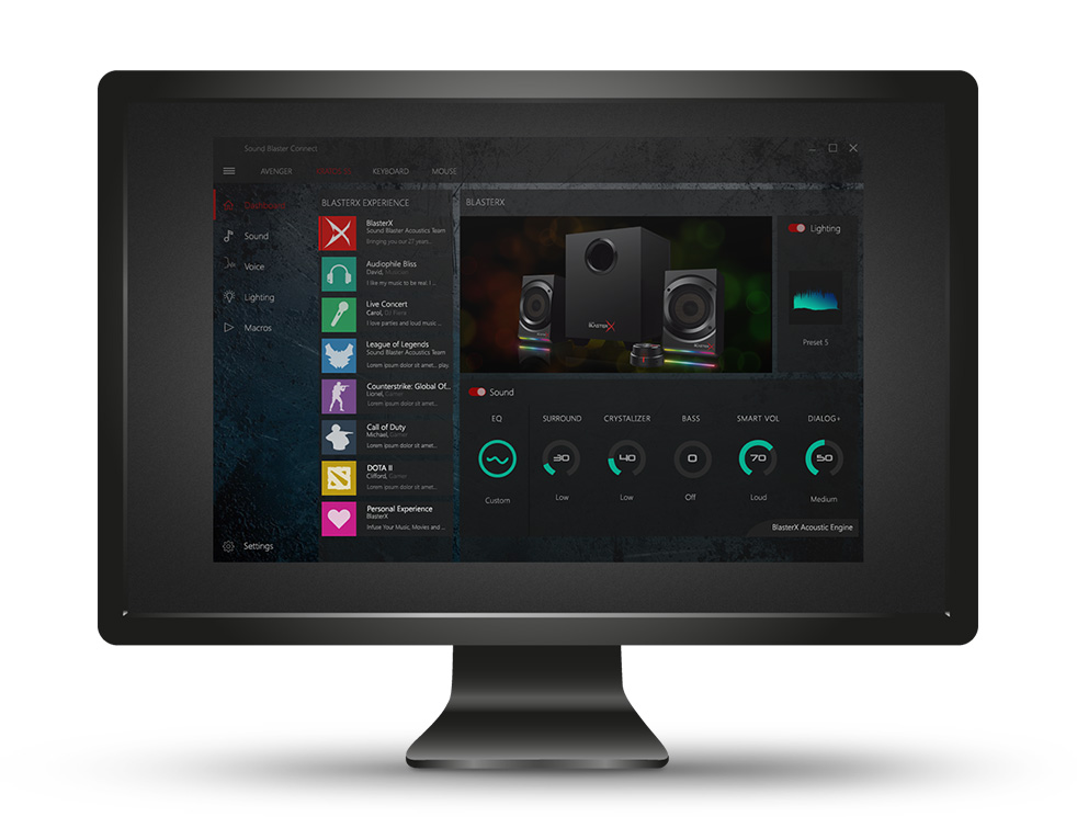 BlasterX Acoustic Engine Pro software for PC.