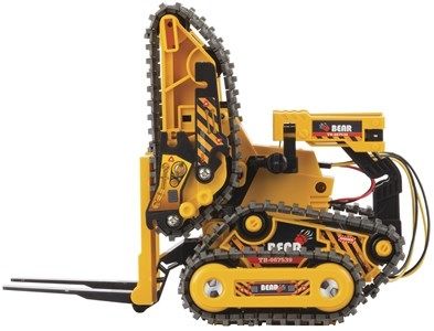 Great fun for the kids to build and play with! This single kit can be built (and re-built) three ways to create a forklift, all-terrain rover or gripping ‘pick up’ machine. Lifting capacity H100g. Includes wired remote control.