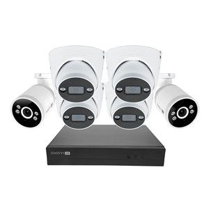 The Swann AdvancedX™ Series 4K NVR Security System delivers unparalleled home security with crystal-clear 4K video, powerful motion detection, color night vision and integrated deterrents like bright spotlights and loud sirens. Enjoy free local storage with a 1TB hard drive and reliable wired connections for uninterrupted peace of mind with 24/7 recording.Features:4K NVR Kit8 Channels4x4K Spotlight Dome cameras and 2x4K Bullet cameras 1TB HDD included IP66 weatherproof