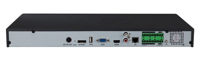 1 HDMI and 1 VGA output for full HD local playback, easy-toaccess USB, eSATA, alarm in and alarm out ports for future expansion and external integration